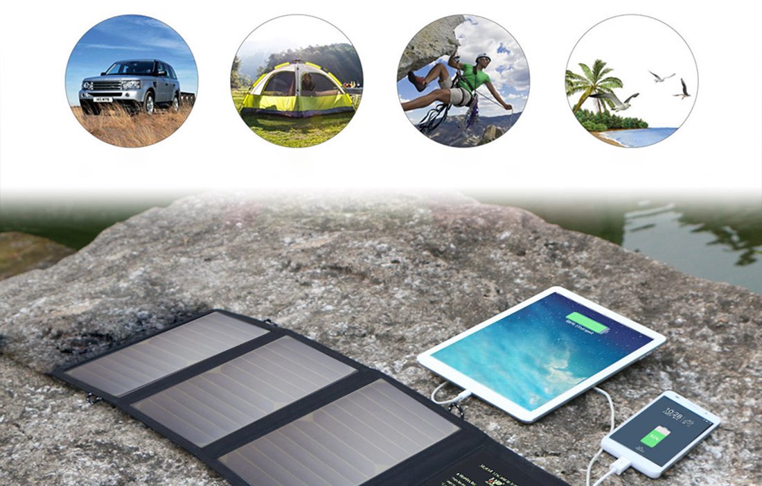 Ez a napenergia töltő kompatibilis számos eszközzel. Automatikusan felismeri a csatlak