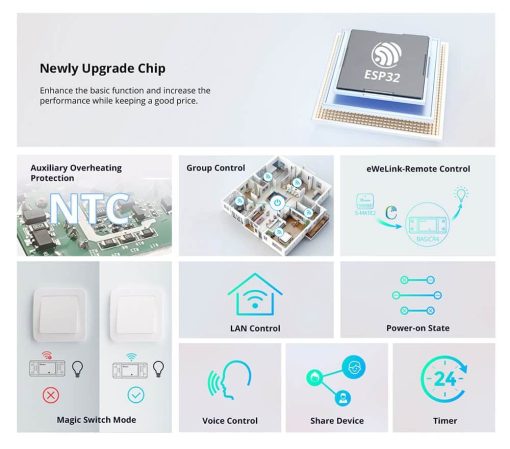 【eWeLink-Remote” Vezérlés】 A BASICR4 egy okos kapcsoló az „eWeLink-Remote” átjáró funkciójával. Hozzáadhat „eWeLink-Remote” aleszközöket, használhatja a S-Mate2-t vagy az R5-öt a BASIC R4 párosításához, majd beállíthatja a jelenetet, így kétirányú és helyi vezérlést érhet el.